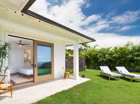 Built by Mahana Homes in Kona Hawaii, designed to overlook a coffee hobby farm with stunning views to the ocean. This is an open plan Hawaii family home integrates the inside living with their spacious lanai in a modest footprint with a highly cost-effective layout.